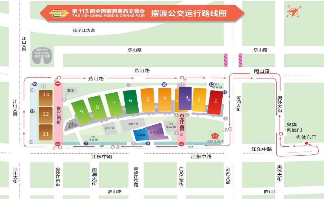 本次糖酒会期间,预计单日车流量将远远超过南京国际博览中心实际停车泊位数量,届时周边多条路段将采取交通管控措施缓解通行压力,地铁2号线、10号线交会的元通站是绿色便捷抵达的最优解。参展群众也可以从奥体中心东门乘坐有轨电车1号线前往元通或博览中心东门。