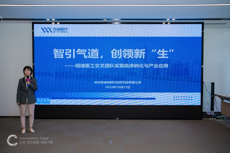 获得本次比赛二等奖的徐州百瑞麻醉科技研究院有限公司则展示了智能麻醉气道管理工具项目,以医工融合为核心特色,分享了从临床需求到技术转化的全过程。
