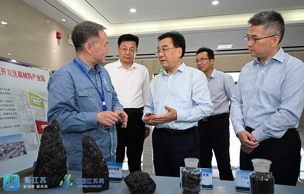 金凌创联新材料公司由中国石化集团投资建设,是赣榆高新区碳材料产业园重点项目之一。信长星参观产品样本并走进总控室,听取技术原理、工艺流程、市场前景以及与南京金陵石化协作等情况介绍,鼓励企业积极应用新技术、延伸产业链,通过深加工将石油“吃干榨净”,既生产更多高附加值产品抢占竞争制高点,又为实现碳达峰碳中和作出更大贡献。
